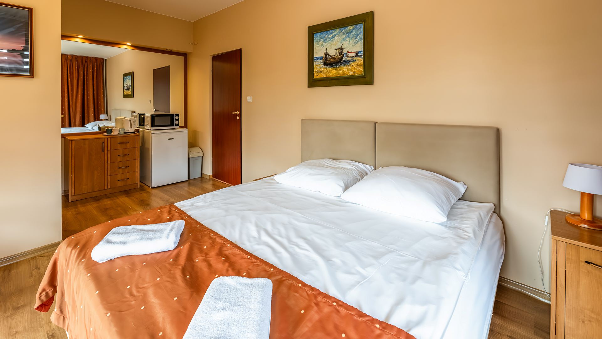 We wszystkich pokojach nasi Goście znajdą: ręczniki, lodówkę, czajnik, szklanki.