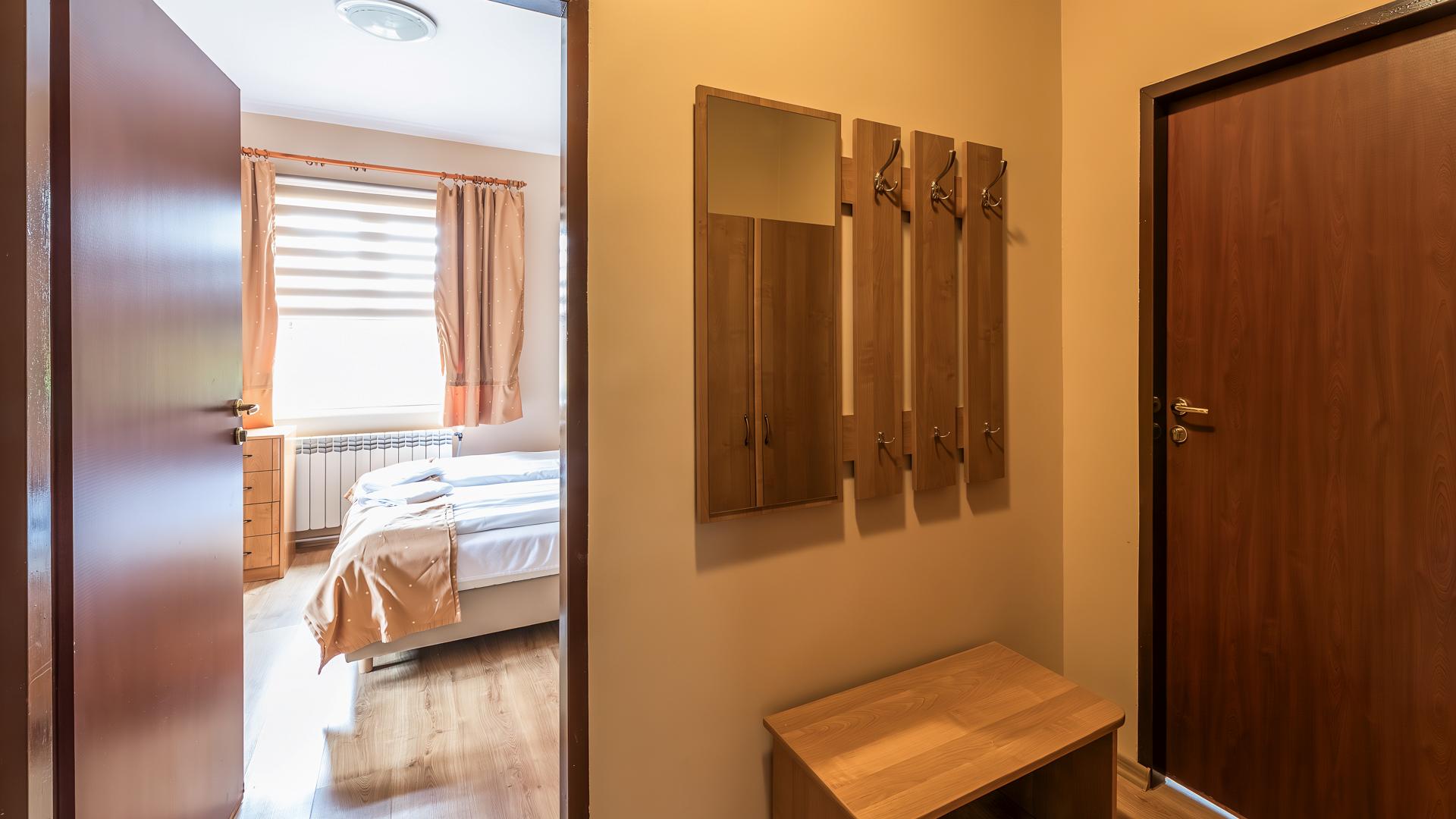 Składa się z dwóch pokoi i dwóch łazienek. W pierwszym pokoju znajduje się wygodne łóżko małżeńskie, a w drugim trzy pojedyncze łóżka hotelowe, które można dowolnie konfigurować – złączyć lub pozostawić osobno, dostosowując układ do potrzeb Gości. Istnieje również możliwość dostawki.
